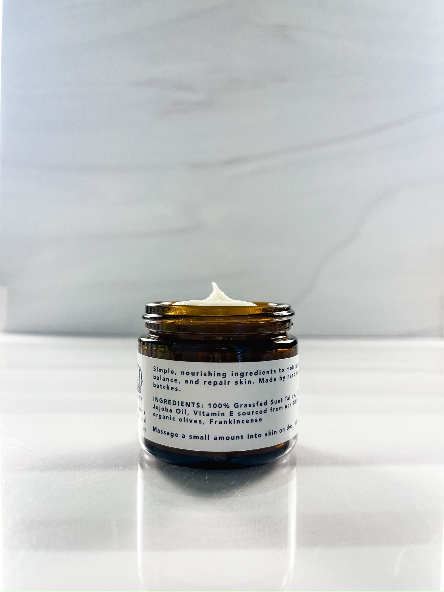 Introducing our enhanced Original Tallow Salve, a timeless blend of 100% grass-fed tallow and organic extra virgin olive oil, now fortified with Vitamin E. Whipped to perfection, this all-natural moisturizer deeply hydrates and rejuvenates your skin, offering increased benefits with the added power of Vitamin E. Pure and organic, it's a chemical-free solution that nourishes and revitalizes your skin, providing an extra boost for a healthier, more radiant complexion.