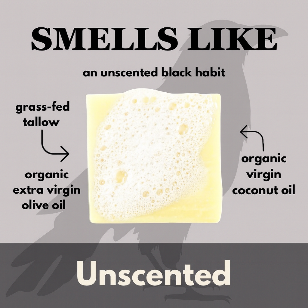 This unscented 6oz XL bar is crafted for those who seek simplicity and purity in their daily cleansing. Made with 100% grass-fed tallow for deep, nutrient-rich moisturization, organic extra virgin olive oil for silky nourishment, and organic coconut oil for a gentle, thorough cleanse. Free from fragrance and harsh additives, it’s perfect for sensitive skin or those who prefer the clean scent of natural soapmaking.